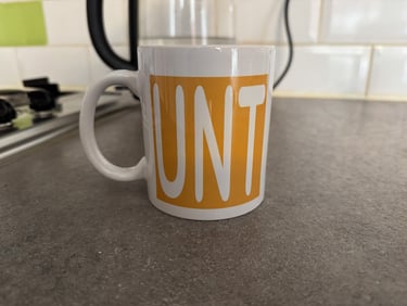 For some reason, this client would only ever give me this mug when he made me a cup of tea, not sure why. (Does anyone know what UNT stands for?)