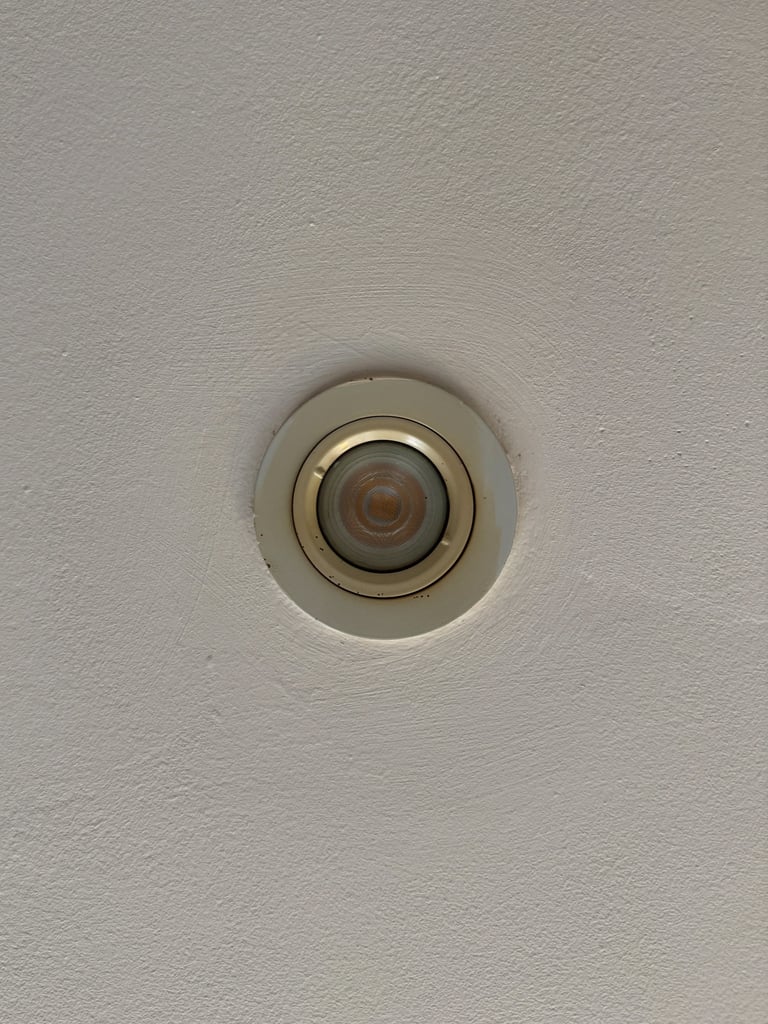 As I was painting the ceiling, I realised the light fittings were also not meant to be the colour they were. Fortunately, these were easily cleaned with a gentle wipe.
