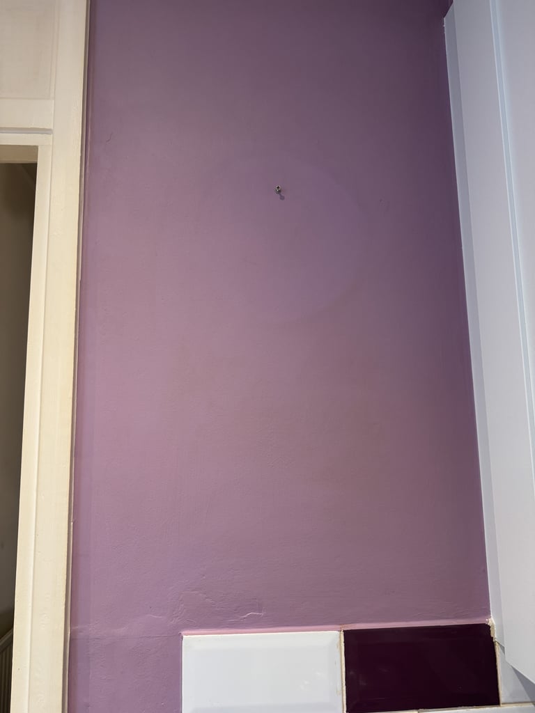 The staining on the walls wasn't quite as obvious but was definitely still present. This colour is Frosted Grape by Dulux.