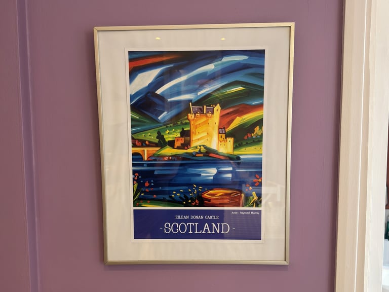 I couldn't be bothered to paint this wall so I just stuck a picture up to hide the stains instead. Worked a treat.